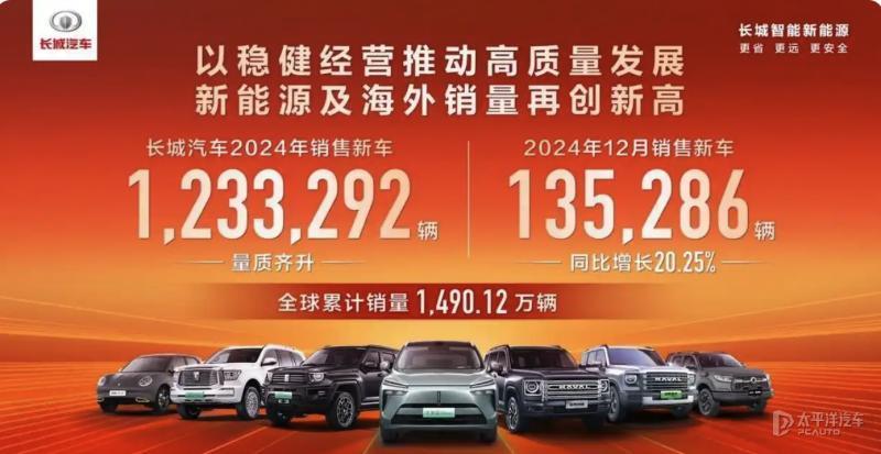 据了解,长城汽车在全球范围内建立了“10+3+N”的生产布局,包括泰国罗勇工厂、巴西伊拉塞马波利斯工厂等多个海外生产基地。2024年长城汽车全年销量达123.33万辆。其中新能源汽车销量32.18万辆,同比增长22.82%;海外销量45.31万辆,同比增长43.39%。